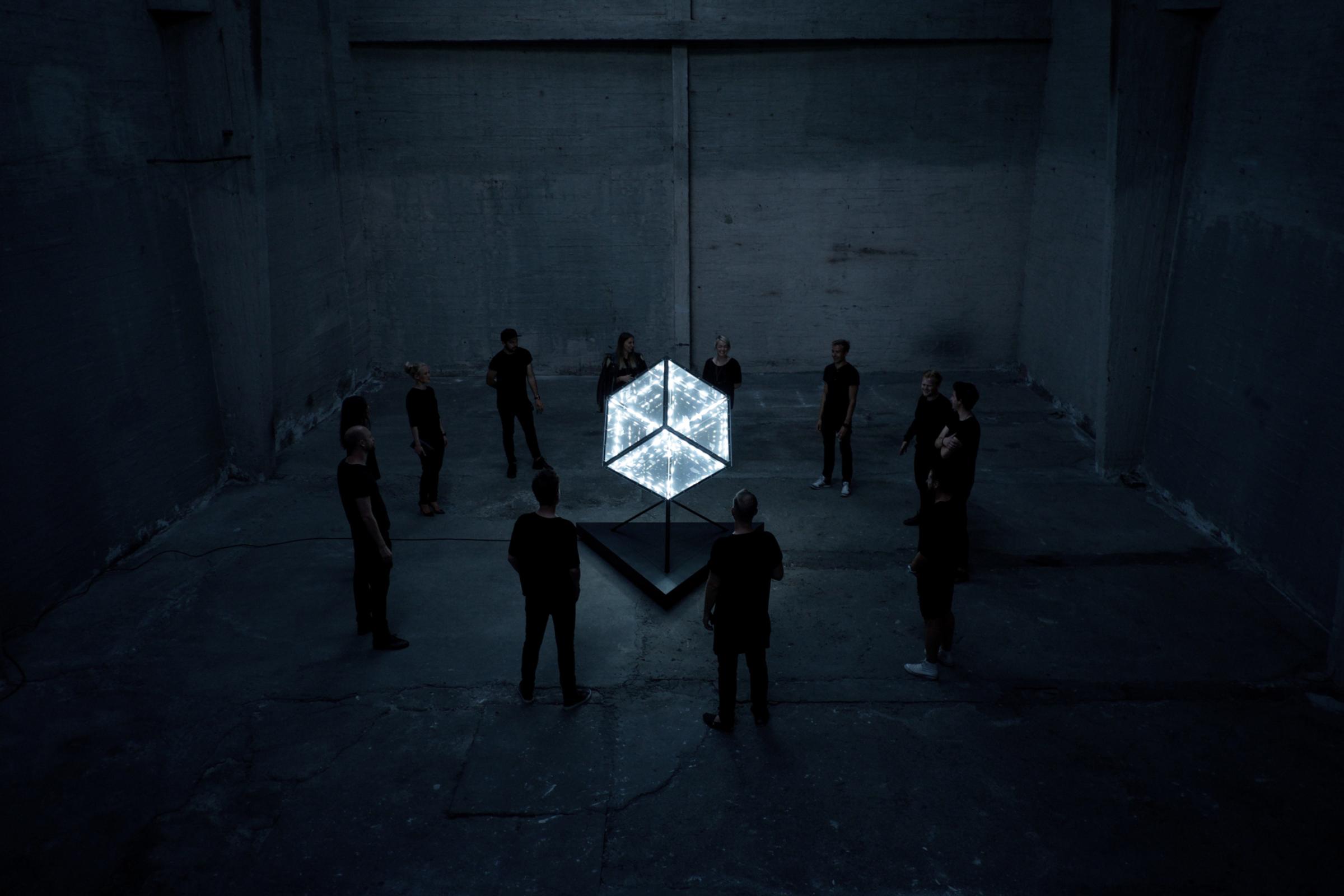 C8 is a self-commissioned artwork that explores light as a medium for manipulating perception and dimensionality. The title references both the tesseract—typically visualized as the shadow of a four-dimensional cube projected into three-dimensional space—and the cervical spinal nerve C8, which controls finger flexion in humans. This dual nomenclature establishes connections between geometric abstraction and biological function, suggesting how complex systems can be understood through their projected manifestations.