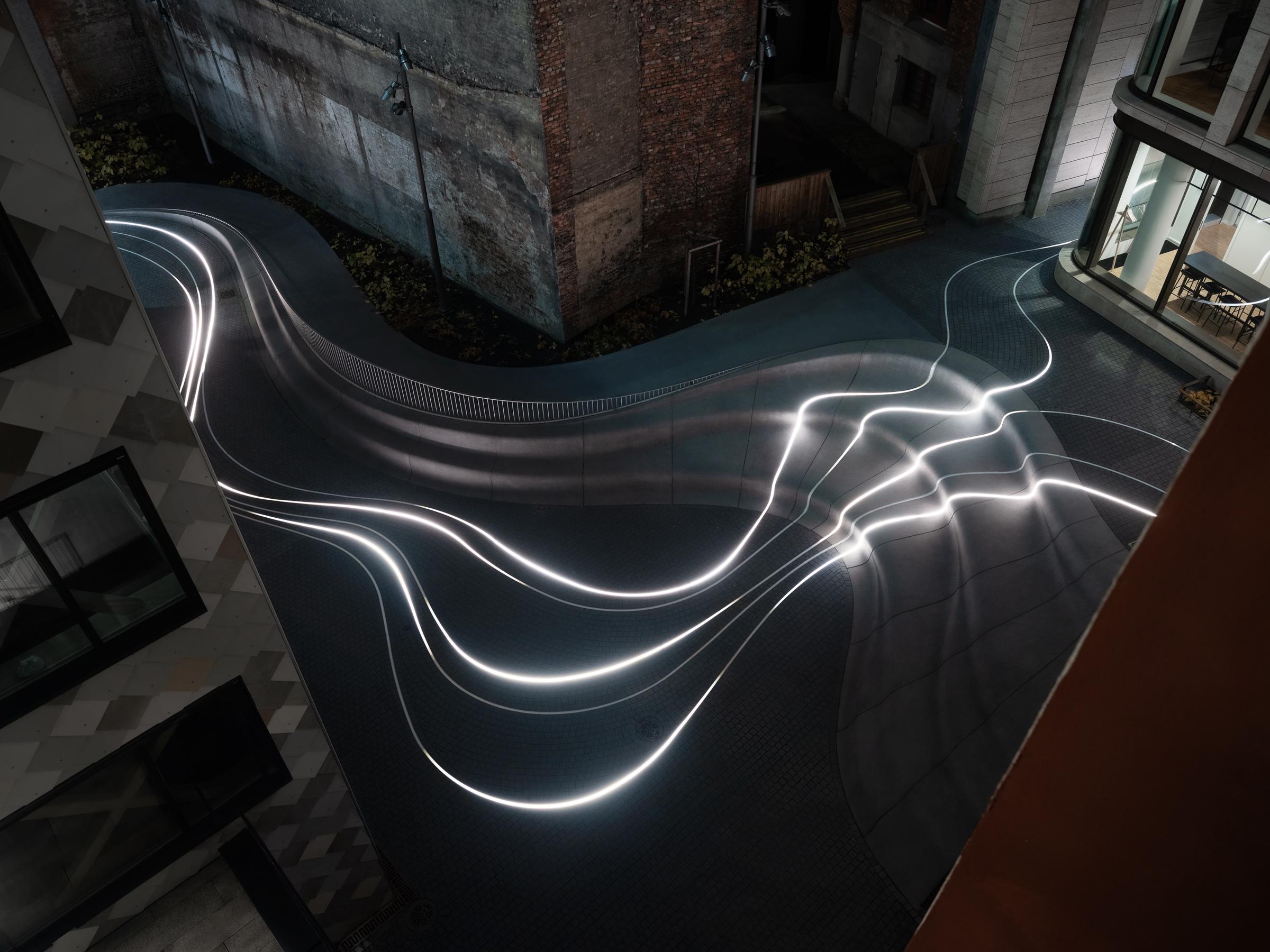 Delta is a large-scale lighting installation that transforms the cobbled alleyways of Oslo's Tullinløkka development into flowing rivers of light. Created by Void as both a sculptural intervention and wayfinding system, the installation encourages exploration of the emerging neighborhood through custom made LED-fixtures that wind through the narrow passages.