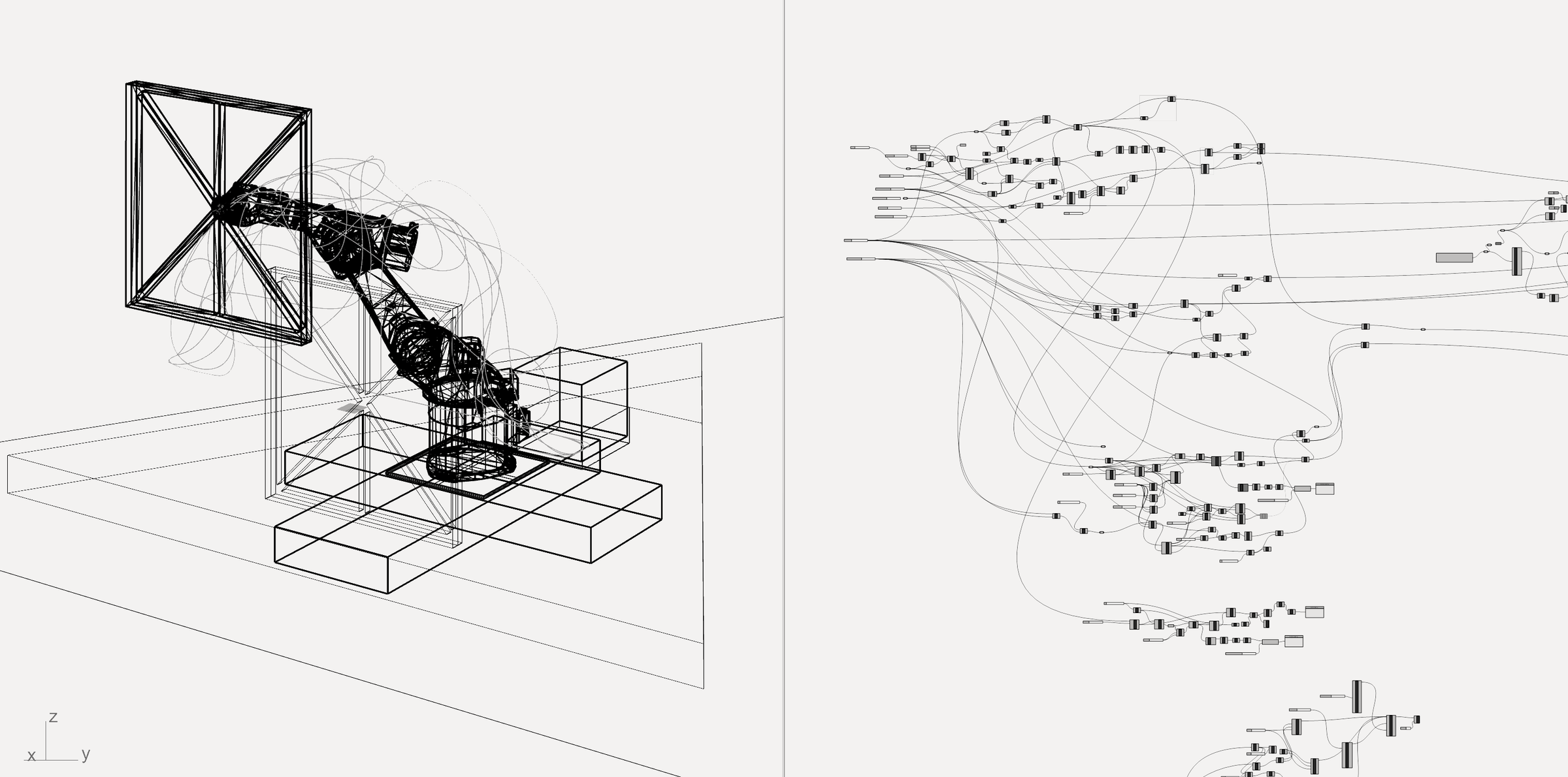 A custom Grasshopper script was developed to simulate and program the Robot's motion paths using the Kuka PRC plugin
